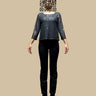 blouse, paillettes, three quarter sleeves, boat neck, comfort fit, hips lenght,