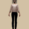 blouse, paillettes, three quarter sleeves, boat neck, comfort fit, hips lenght,